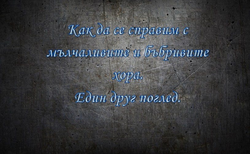 Тук във втората статия от поредицата статии за това как да се справим с различните „трудни хора“ ще направя нещо на пръв поглед изненадващо и може би за някой объркващо, но в процеса на нашият анализ ще обоснова своето намерение и ще дам доводите за него по начин, по който се надявам да бъде завладяващ и достатъчно полезен за всеки. Тук нашият анализ ще тече в лоното едновременно на две реки, едната – „как да се справим с мълчаливият тип човек, а другата – „как да се справим с бъбривият тип човек“. Вие още тук можете и най-вероятно ще попитате какво е основанието да се съчетаят тези два противоположни типа в един анализ, какво налага това съчетаване и какво го обосновава. На тези и на още много въпроси ще бъде даден отговор в процеса на анализа, а сега ще кажа само, че въпреки привидната противоположност, тези два типа хора имат много повече общо помежду си отколкото очаквате.