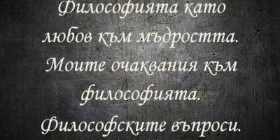 Философията като любов към мъдростта. Моите очаквания към философията. Философските въпроси.