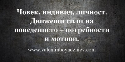 Човек, индивид, личност. Движещи сили на поведението – потребности и мотиви.