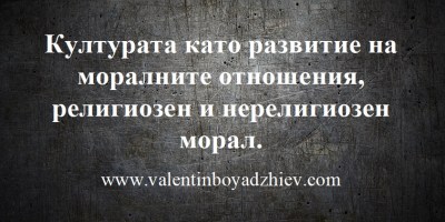 Културата като развитие на моралните отношения, религиозен и нерелигиозен морал.